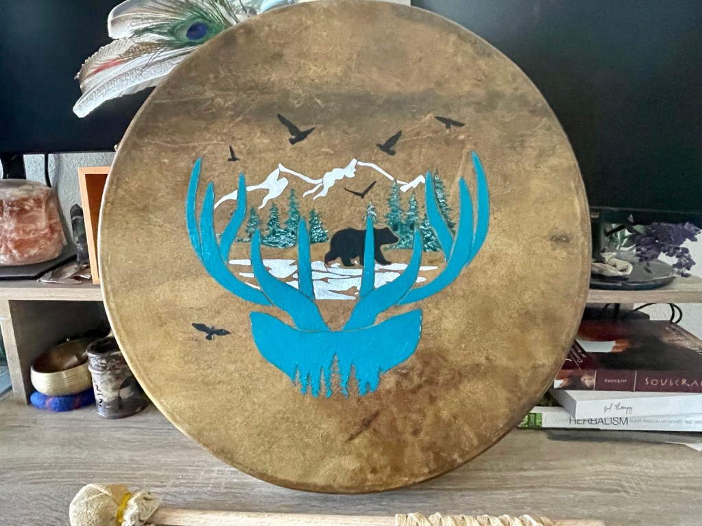 When I made my drum, I fretted over every little imperfection. I spent a couple of weeks like this before I had the courage to buy a stencil and paint on it. I’ve had it for two years now and don’t even notice a single imperfection. Only a beautiful expression of medicine that draws out another suppressed form of art, singing. That is another anxiety provoking expression that I am working towards healing.